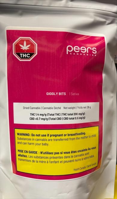 | Peers Cannabis Giggly Bits Sativa | PG22103 | 28 g | 24 JA 16 | THC : 1,4 mg/g THC total : 200 mg/g | THC : 14 mg/g THC total : 200 mg/g |