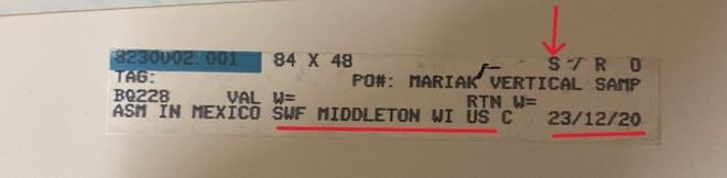 L’étiquette du produit, située sur le dessus du rail supérieur des stores visés par le rappel, comporte un « S » dans le coin supérieur droit de l’étiquette, indique que le fabricant est SWF Middleton, WI US C et indique la date de fabrication dans le coin inférieur droit après le 1er mai 2022 (format AAAA/MM/JJ ou AA/MM/JJ).