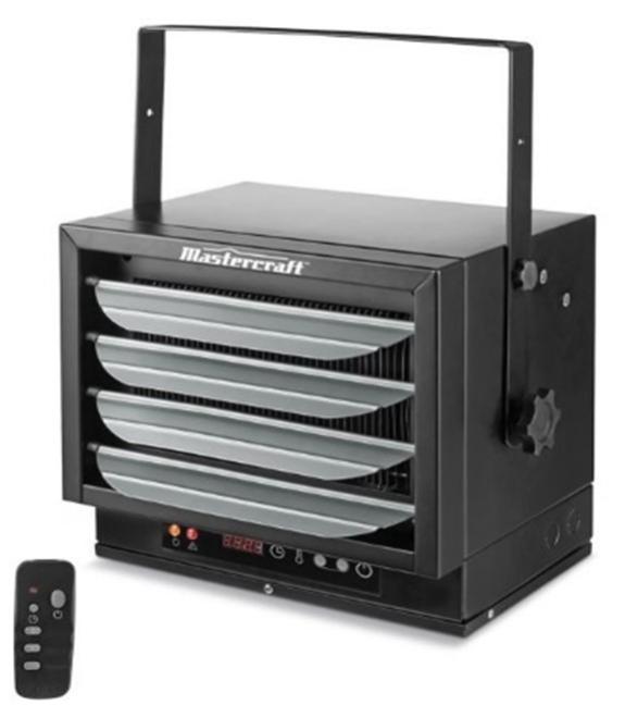 | Vendues par Canadian Tire : Mastercraft Chaufferettes électriques tout usage montées au plafond, 7500 W/240 V, pour ateliers et garages avec télécommande et thermostat | SKU 043-5120-2 CUP 674465005988 Modèle EH-4604BY cETL 4003667 De couleur noire | Tous les codes de date qui se terminent par « 2020 » (de l’année 2020) et « 2021 » (de l’année 2021) sont touchés. Les codes apparaissent dans le format MM/AAAA sur l’étiquette indiquant les valeurs de rendement qui est apposée sur les chaufferettes. Les unités Mastercraft ont aussi des étiquettes portant le code de date sur la boîte de conditionnement et sur le produit dans le format JJMMAA - toutes les unités dont le code se termine par « 20 » et « 21 » sont touchées. |